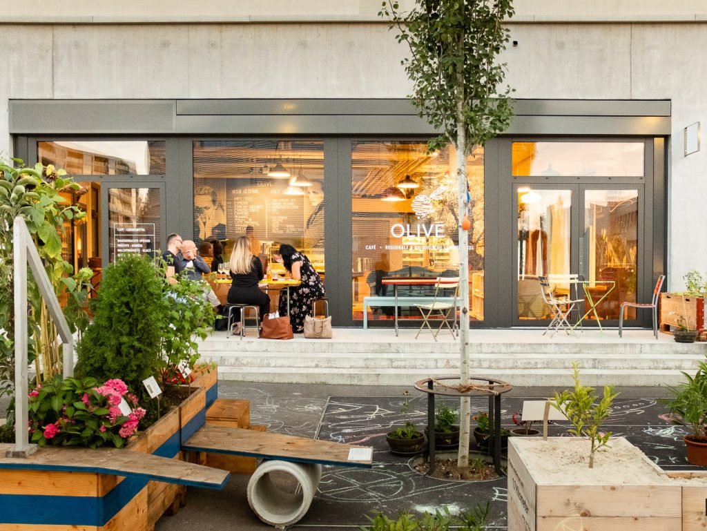 Die Olive vereint verschiedene Ideen an einem Ort. Das Ladencafé ist ein gemütlicher Treffpunkt und eine kleine Oase im Zürcher Quartier Manegg. Im integrierten Laden-Abteil, findest du regionale, biologische und nachhaltig hergestellte Produkte. In den Regalen des Ladens stehen Produkte von bekannten Bio-Marken und von den Landwirten der Umgebung. Genau diese Bio-Produkte landen dann auch in den täglich, frisch gekochten Menüs, Snacks und Kuchen der Olive. Wer möchte kann seine eigenen Behälter mitbringen und ganz zero-waste-freundlich Waschmittel, Reis, Nüsse usw. unverpackt erwerben.